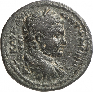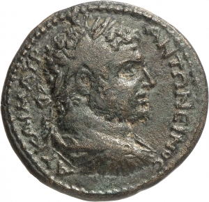 ΑΥ ΚΑΙ Μ ΑΥΡ ΑΝΤΩΝΕΙΝΟϹ; laureate, draped and cuirassed bust of Caracalla, right, seen from rear