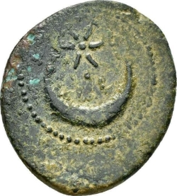 Cybele (?) reclining on eagle flying right; to right, star (?)