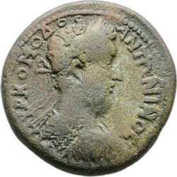 Μ ΑΝΤΩΝΙ ΚΟΜΟΔ ΑΥΓ; laureate-headed bust of Commodus wearing cuirass and paludamentum, right