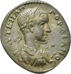 ΑΥΤ Κ Μ ΑΝ ΓΟΡΔΙΑΝΟϹ; laureate, draped and cuirassed bust of Gordian III, right, seen from rear