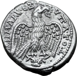 ΔΗΜΑΡΧ ΕΞ ΥΠΑΤΟϹ; eagle seen from front, with wings spread, head right, wreath in beak; between legs, crescent; star in upper left field; three pellets in exergue