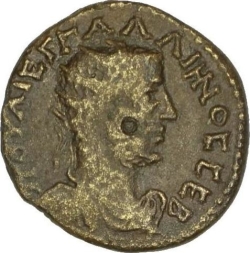 Γ ΠΟΥΒ ΛΙΚ ΕΓΝ ΓΑΛΛΗΝΟϹ ΑΥΓ; radiate, draped and cuirassed bust of Gallienus, right, seen from rear