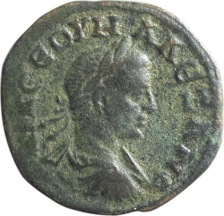 laureate, cuirassed and draped bust of Severus Alexander, right, seen from rear