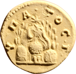 ΚΑΙϹΑΡΕωΝ Τ Π ΑΡΓΑΙ Γ; eagle standing, facing, head, right, spreading wings