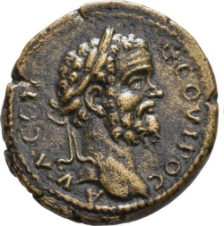 Λ ϹΕΠ ϹΕΟΥΗΡΟϹ ΠΕ; laureate head of Septimius Severus, right