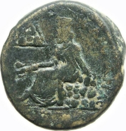 ΜΗΤΡΟ ΚΑΙϹΑΡΙ ΕΤ Γ; figure seated left, on rocks, holding branch and globe