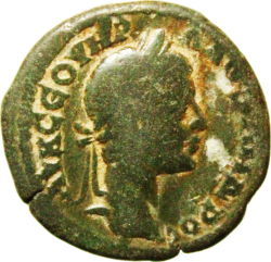 ΑΥ Κ ϹΕΟΥΗ(ΡΟ)(Ϲ) ΑΛΕΞΑΝΔ(Ρ)(ΟϹ); laureate head of Severus Alexander, right