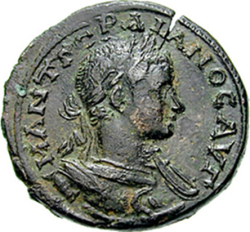 Μ ΑΝΤ ΓΟΡΔΙΑΝΟϹ ΑΥΓ; laureate and cuirassed bust of Gordian III, right, seen from front, with eagle on cuirass