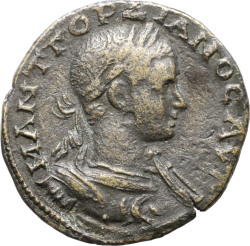 Μ ΑΝΤ ΓΟΡΔΙΑΝΟϹ Κ; bare-headed and draped bust of Gordian III, right, seen from rear