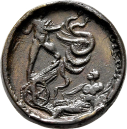 [ΗΡΑΚΛΗΑϹ ΜΑΤΡΟϹ ΑΠ]ΟΙΚΩΝ [ ]; Triptolemus standing in biga drawn by two winged serpents, right, raising right arm; on the right, personification of the Pontus Euxinus seated right, holding anchor