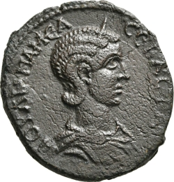 ΙΟΥΛΙΑ ΜΑΜΕΑ ϹΕΒΑϹΤΗ; diademed and draped bust of Julia Mamaea, right