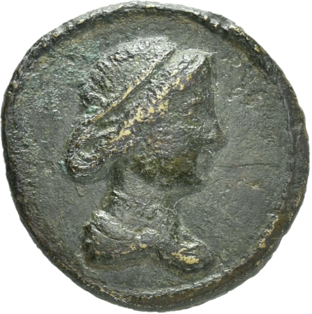 ΚΟΡΗ; laureate and draped bust of Kore, right