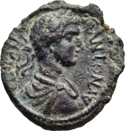 COL PTOL; Tyche standing left with cornucopia and rudder