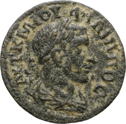 ΑΥΤ Κ Μ ΙΟΥΛ ΦΙΛΙΠΠΟϹ; laureate, draped and cuirassed bust of Philip I, right, seen from rear
