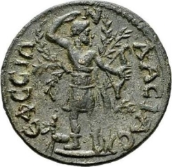 ΕΦΕϹΙΩΝ ΤΥΧΗ; Tyche standing left, holding cult image of Artemis Ephesia in right and cornucopia in left