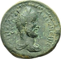 [ΦΛΑΥΙΟ?]ΠΟΛ[ΕΙΤΩΝ?] [Ε]Τ ΞΗ; veiled, bearded and draped bust (of Zeus or Kronos?), right