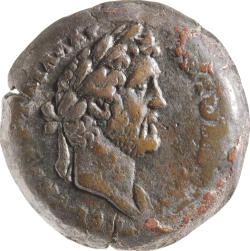 bare-headed bust of Marcus Aurelius (short beard) wearing paludamentum, right
