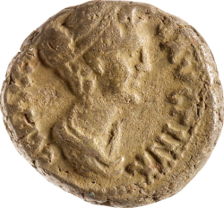 laureate-headed bust of Antoninus Pius wearing paludamentum, left