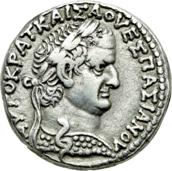 laureate head of Vespasian, right, with aegis