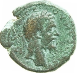 laureate head of Septimius Severus, right, with drapery on shoulder, facing laureate head of Caracalla, left, with drapery on shoulder