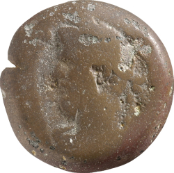 laureate head of Lucius Verus with traces of drapery, left (?)
