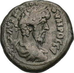 bare head of Lucius Verus with traces of drapery, right