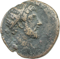 radiate head of Marcus Aurelius with traces of cuirass, right