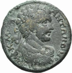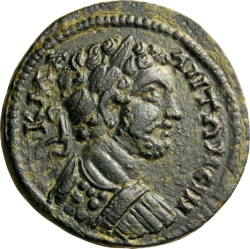 laureate and cuirassed bust of Caracalla, right, seen from front