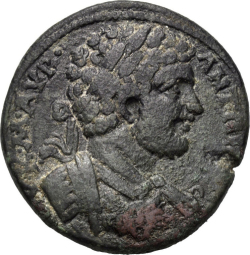 laureate, draped and cuirassed bust of Caracalla, right, seen from rear
