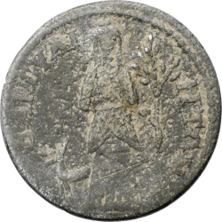 Tyche standing left, holding rudder and cornucopia
