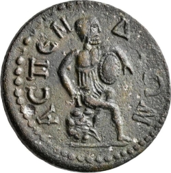 river-god Eurymedon reclining left holding prize crown in extended right and reed in left, which rests on urn from which water flows