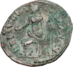 Homonoia seated left, holding patera and cornucopia