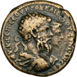 jugate busts of Septimius Severus, laureate, draped and cuirassed, and Julia Domna, draped, right, seen from rear