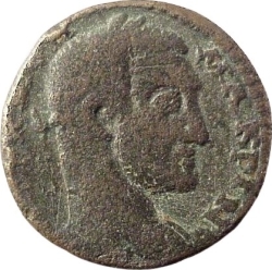 laureate and cuirassed bust of Macrinus, right, seen from front, with gorgoneion on cuirass