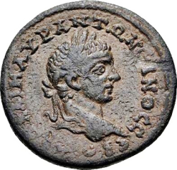laureate head of Elagabalus, right; sometimes, below, star, or dot in crescent
