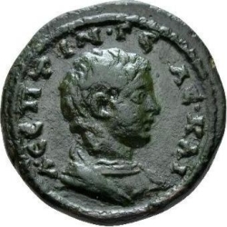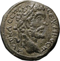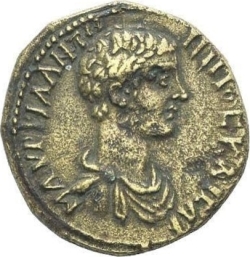laureate, draped and cuirassed bust of Caracalla, right, seen from front