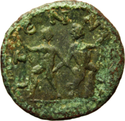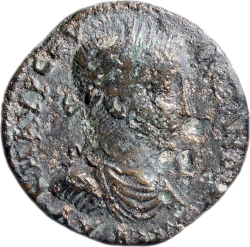 laureate, draped and cuirassed bust of Elagabalus, right, seen from rear
