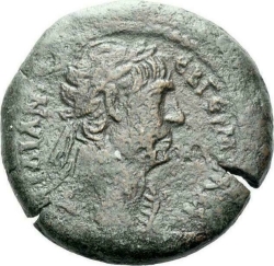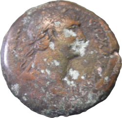 laureate bust of Trajan, right, draped and cuirassed (?)