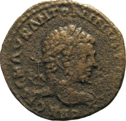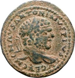 laureate, draped and cuirassed bust of Caracalla, right, seen from rear