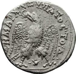 eagle standing facing, wings spread, head left, wreath in beak; between legs, star