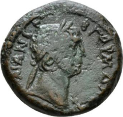 laureate bust of Trajan, right, nude and with aegis on left shoulder
