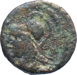 diademed head of hero Kyzikos (youthful), right; serpent beneath