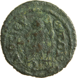 Tyche standing left, holding two ears of corn with rudder and cornucopia
