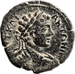 laureate, draped and cuirassed bust of Caracalla, right, seen from rear