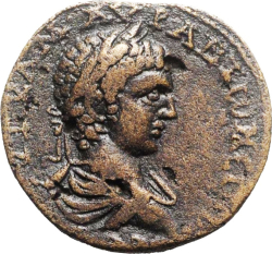 laureate, draped and cuirassed bust of Severus Alexander, right, seen from front