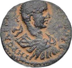 laureate, draped and cuirassed bust of Elagabalus, right, seen from front