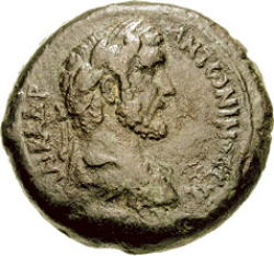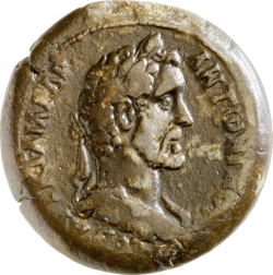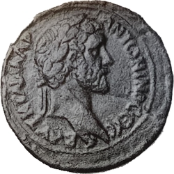 laureate-headed bust of Antoninus Pius wearing cuirass and paludamentum, right (?)