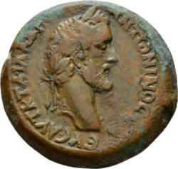 laureate head of Antoninus Pius, right