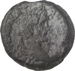 laureate-headed bust of Antoninus Pius wearing cuirass and paludamentum, right, seen from front or rear