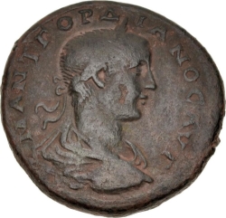 laureate, draped and cuirassed bust of Gordian III, right, seen from front